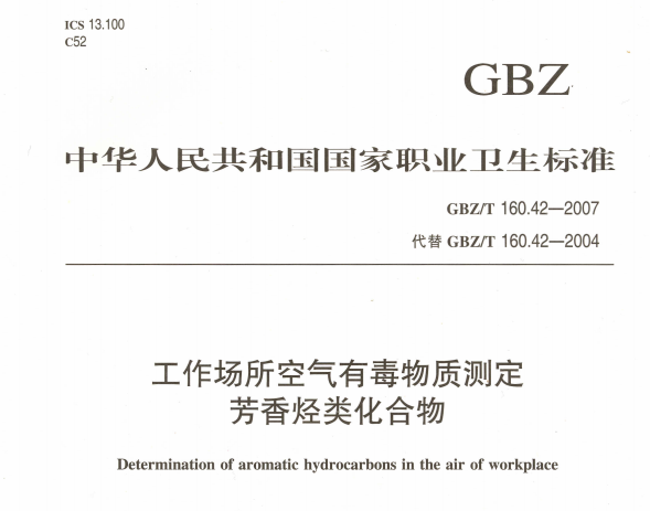 GBZT 16042-2007工作場所空氣有毒物質(zhì)測定 芳香烴類化合物 GBZT 16042-2007工作場所空氣有毒物質(zhì)測定 芳香烴類化合物 更新日期:2020-05-11 下載包(1)